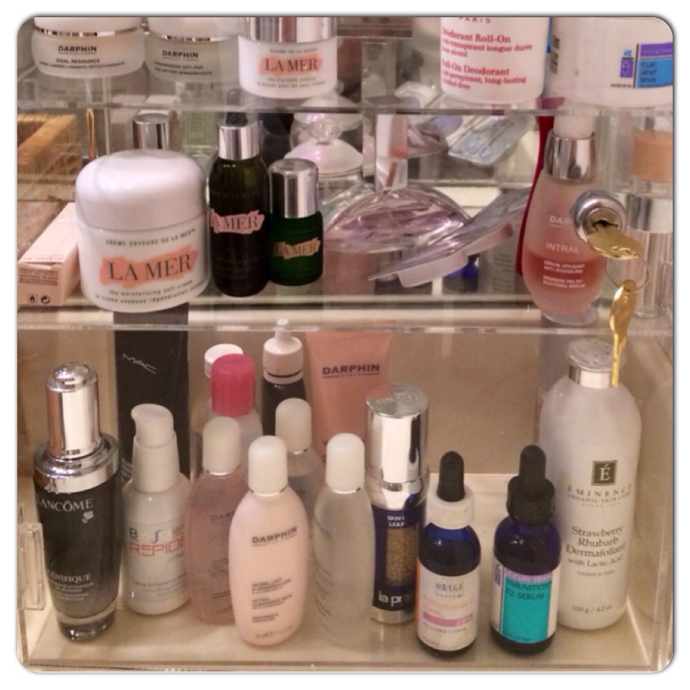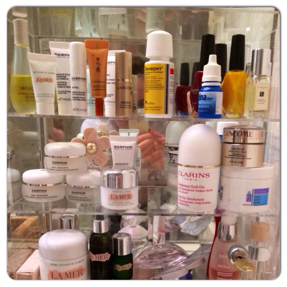 К косметологу хожу раз в две недели. Глубокая чистка раз в месяц, массажи маски и другие примочки для красоты кожи . Сейчас стараюсь не теребить кожу слишком часто, это тоже вредно. Оборудовала себе одну из наших ванн под свои все процедуры, которые можно проводить дома. Я редко пользуюсь всем этим дома, но когда есть время , ставлю какой нибудь фильм и наяриваю голубой лампой по лицу в течении 40 минут. Прибор baby quasar , он же свето терапия или лечение голубым светом (специалисты поправте если что) очень помог мне в борьбе со всеми ненавистными акне, которые так и наровят выскочить в самый не подходящий момент. С использованием этой голубой лампы, прыщики заживают намного быстрее и более безболезненно. Есть еще один аппарат microdermabrasion PMD, хорошо отшелушивает верхний слой кожи, но я очень редко им пользуюсь, все таки микродерм пускай делают специалисты в салоне. Лопаточка ульрозвуковая что-то меня не впечатлила, пользуясь редко , но эффекта особого не вижу. Ну и клиросоник это маст хэв, я только им и умываюсь, на маленькой скорости мягкой щеточкой для лица. Хорошая органик линия для лица eminence, мне ее посоветовала моя косметолог. Так же C-serum фирмы obagi. Очень много валяется кремов фирмы la prerie , но я ими почти не пользуюсь, эта линия все же для возрастной кожи. Вот лежат , маму ждут. Еще очень нравятся продукты фирмы sk-ii, особенно их примочки под глаза, уменьшают припухлость с утречка. Сейчас подсела на la mer, крем для глаз просто на пять с плюсом. Написала все в кучу, такой сумбур, извиняйте. Фото прилагаю