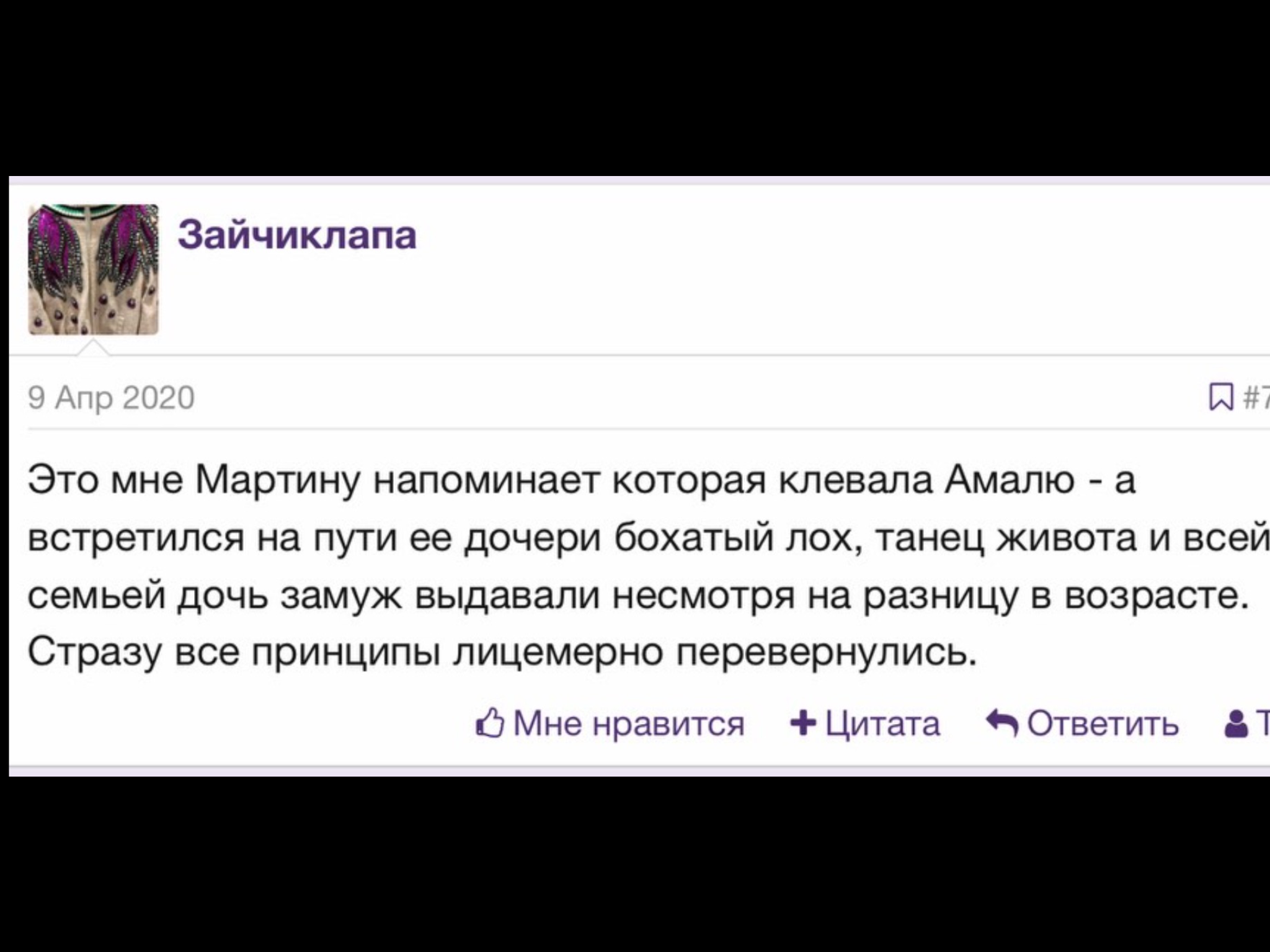 Девы, вот я мирный человек, и на насях меня нет и небыло. Но инфа распространяется. Вот что Натурлавэр писала про меня (скрин внизу). Про Амалию ни одного плохого слова никогда не сказала, более того мы переписывались с ней в личке, она мне гороскоп делала. Спасибо ей. Я требую, что бы этот зайчик предоставил доказательсва или принёс извинения за враньё. И хочу пожелать ей такого же прекрасного зятя, как мой!