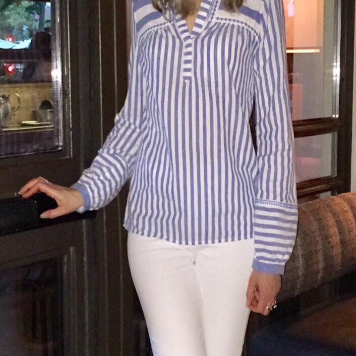 Вариант 2 , 100 проц туника, но ещё не платье, Chico’s, но меня все не покидает мысль, что носить туники мне противопоказано и меня они совсем не украшают, они делают меня длинной, здесь та же полоска, хотя именно для нашего возраста их больше всего продают в разных размерах... Зеркала хорошего, не искажающего, как в старом доме, у меня нет, поэтому начала мучиться такими вопросами, саму себя фоткать на автомат не хочу, просто лень...какие там советы по ношению туник?