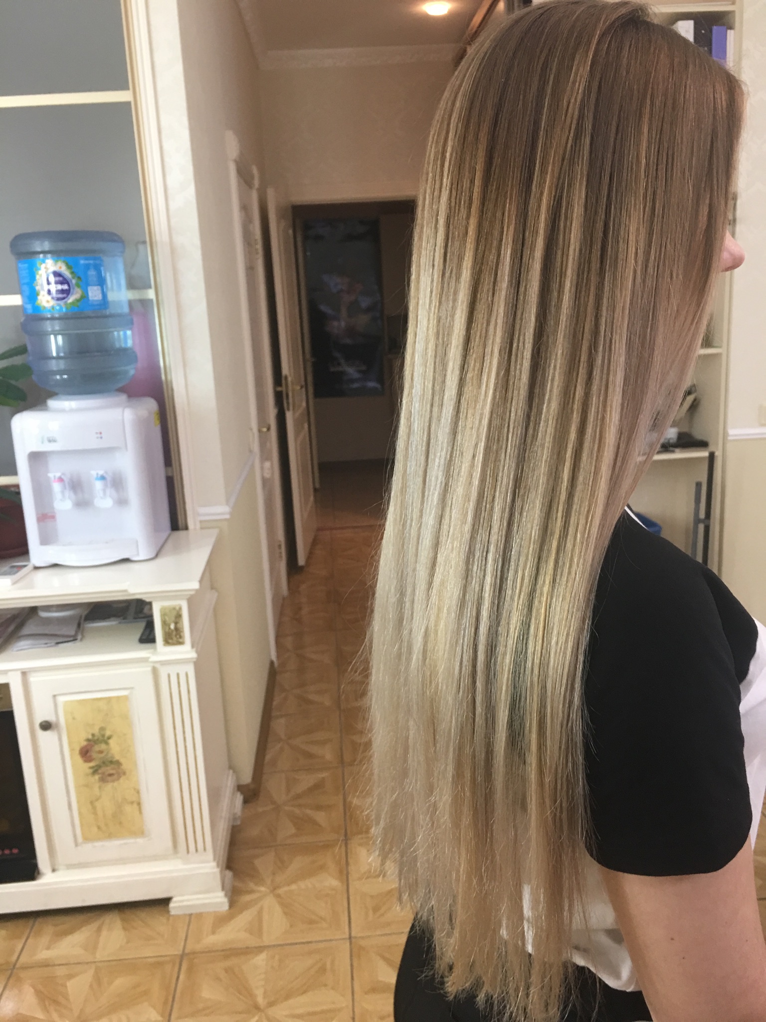 Балаяж легче в майтенанс чем хайлайтсы. Я заплатила около 300 долларов за осветление и 50 долларов мне обходится визит тонирование+укладка. Ну и потом как сильно отрастет то нужно будет добавить прядей. Балаяж красится не от корней, а как бы хаотично ниже и переход не такой четкий. А покраска одним цветом мне обходилась каждый раз в 200. Получается экономия, да. Все эти красивые фотки это после салона - волосы затонированы, уложены. Вы домой придете, на следующий день в спортзал, или на пробежку...  ... Короче такой гламурный вид будет у вас не всегда.