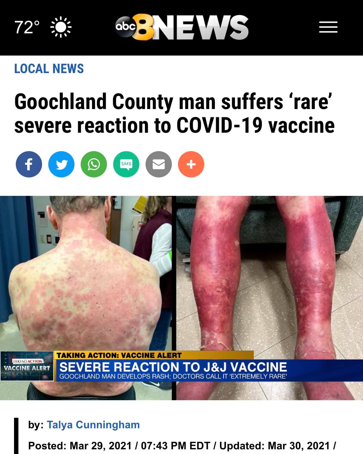 The article says he spent five days in the hospital but he’s thankful to have received the vaccine. https://www.wric.com/news/local-news/goochland-county-man-suffers-rare-severe-reaction-to-covid-19-vaccine/