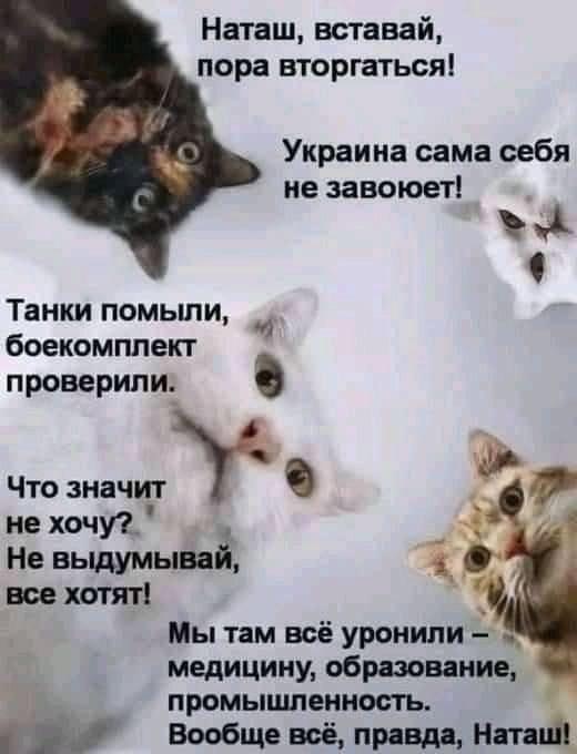 Iamthecat писал(а): Оборжаться К примеру, вторглись и дальше че? Че будут делать? Вообще, дебилы конечно. CNN - все изблЯдовались, друг с другом перетрахались. Надо же хомячков отвлекать от насущных дел, кто им лапшу на уши вешает. А стадо зомби шизанутых им подпевает во всем .))) Сказали , что Путин нападет , значит так и будет .))) Пусть ждут и истерят ))) Сказали , что Путин инопланетян напугал , значит , так и есть Врать тоже ведь надо уметь , но там сплошные провалы по всем фронтам , планета смеётся над идиотами )