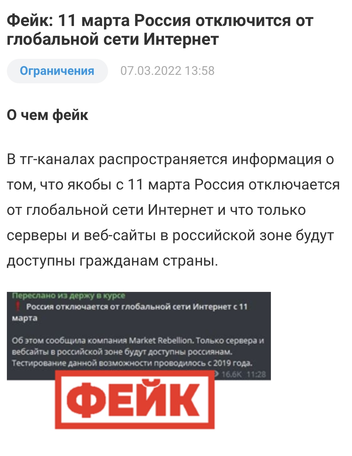 Сейчас прочитала что рашку отключают от интернета 4 марта в 8 вечера по Москве. Надо ли понимать что их отключили уже?