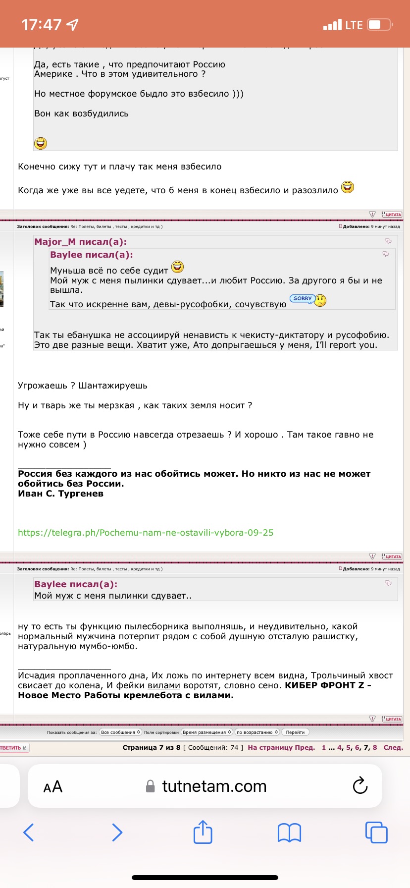 Major_M писал(а): Пылесборщик-сдуватель  которому Жопадья улыбается наверно и приговаривает что ах мол Путя сука, а сама то лицемерка рашистка, корова безмозглая. Сидит мразь не уезжает, а её же граждан — НЕ ТРУСОВ, сейчас МОЗГИ НА УКРАИНСКУЮ ЗЕМЛЮ летят с помощью штатовских дронов. Была колонна — Бах и нет колонны. Поехала бы что ли из такой адской страны, но нет сидит жопу греет. Патриотка Путина в Америке, во как. Вот так подарок! А я то жалела, что не успела скриншот сделать! Спасибо Мажор-душпан