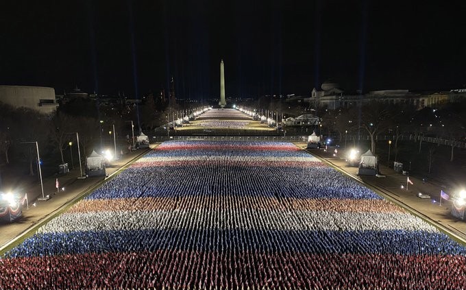 Небольшой конфуз вышел в Вашингтоне, где сегодня уже всё готово к завтрашней церемонии нового президента США Джо Байдена. Перед Капитолием выстроили 200 тысяч американских флагов.
