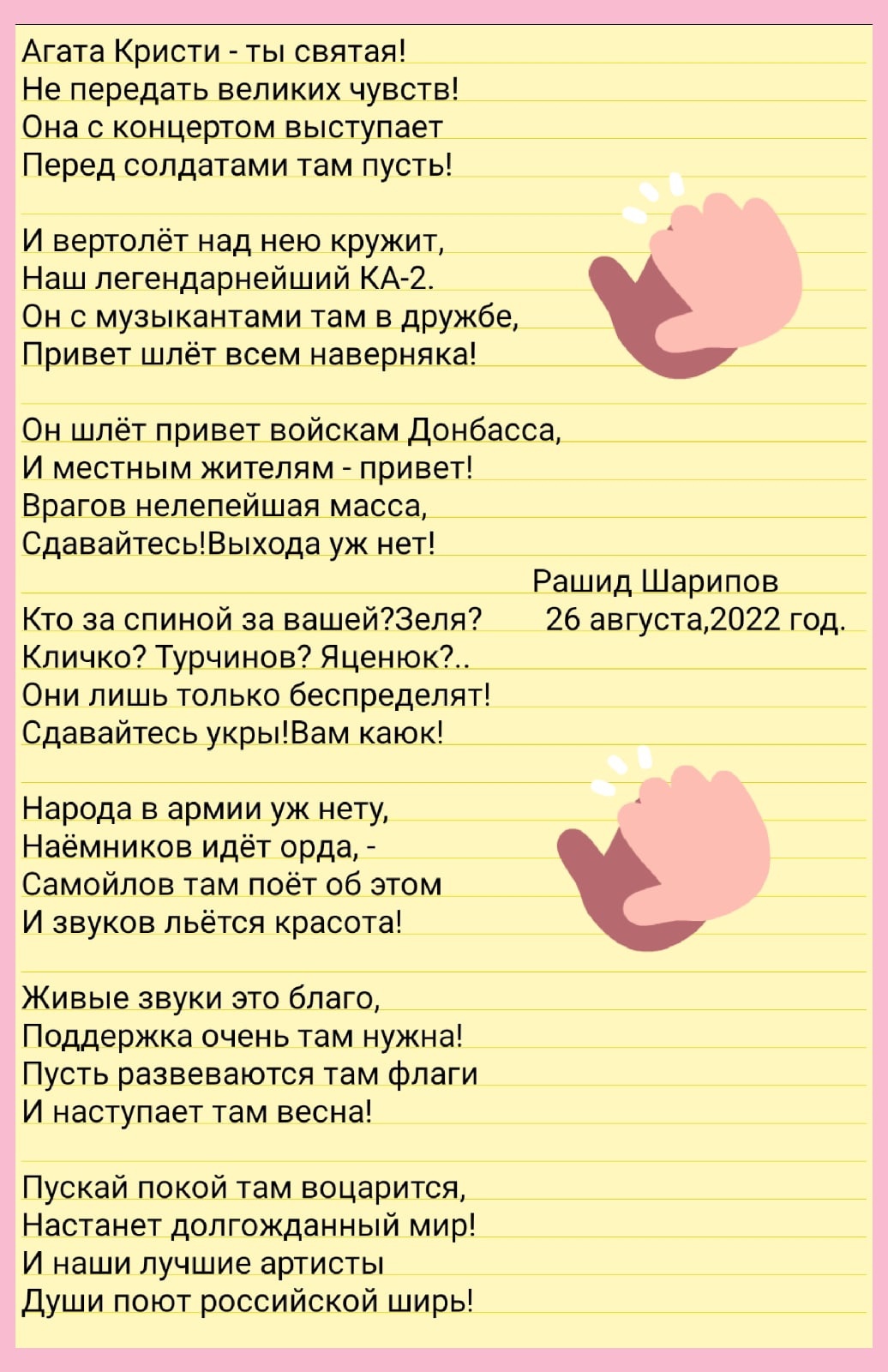 И сейчас там на передовой находится наша легендарная рок-группа,,Агата Кристи,, и её лидер Вадим Самойлов!!! Об этом моё новое стихотворение!!!