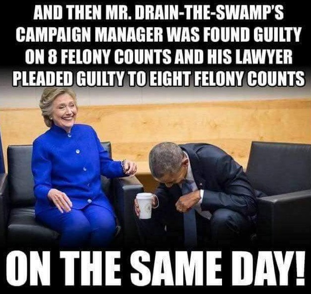 Манафорт признан виновным по 8 пунктам обвинения из 18. По остальным десяти пунктам присяжные не достигли согласия. Виновоности по 8 пунктам достаточно, чтобы 69-летний Манафорт был приговорен к не менее, чем 30 годам лишения свободы. Максимальный срок, который может ему грозить по этим 8 пунктам - 80 лет заключения. Манафорт признан виновным по пяти пунктам обвинения, касающимся неуплаты налогов, по пункту обвинения, касающемуся незадекларированных счетов, на которые он получал десятки миллионов за границей, и по двум случаям банковского мошенничества. https://edition.cnn.com/2018/08/21/poli ... index.html