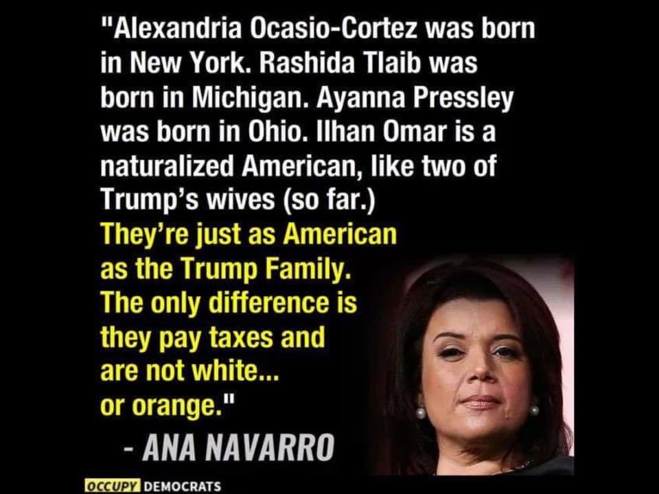 Panna писал(а): Сегодня, на Трамп ралли в Сев Каролине публика скандировала "Send her back", когда Трамп стал критиковать Ильхар Омар. Трамп ралли, можно вполне переименовать в сборище ККК. Она вообще-то поддерживает террористов - так что это уже основание для депортации.