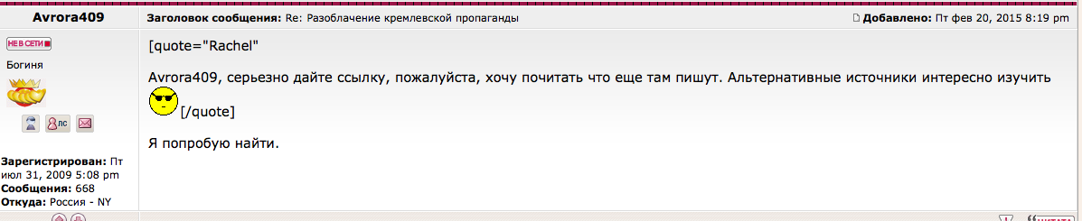 Заголовок сообщения: Re: ЗАКРЫТИЕ ПОЛИТИЧЕСКОГО РАЗДЕЛА НА ФОРУМЕ Добавлено: 22 фев 2015, 14:17 |