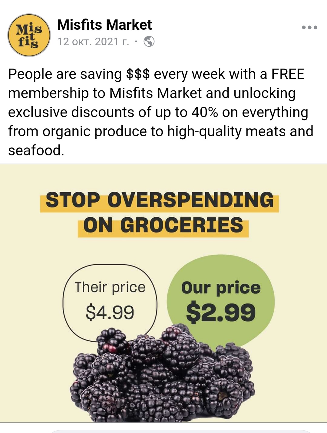 Jaxi писал(а): nyk2009 писал(а): Девочки Кто нибудь пользуеться этим сайтом https://www.misfitsmarket.com/?exp=cfc&utm_source=facebook&utm_medium=paidsocial-middle&utm_campaign=6228547840976&utm_content=6228548120976&utm_term=6242608427776&nw=fb. ? Для свежих фруктов и овощей. Это реалный хороший сервис или скем? Я подписывалась,как помню на 20$. 2 раза пришли коробки.Какие то замухрыжчатые совсем овоще -фрукты, в не очень свежем виде. В милипизерном количестве. Вообщем, совсем ни о чем. Мне тоже нахвалил один, я через него подписалась. Ну также и отписалась. Полная ерунда!  Мисфит не подписка на коробки, ты сам выбираешь продукты и не обязательно каждую неделю. Минимум 30 дол заказ. Овощи и фрукты в основном органик и могут быть не совсем стандартные, т.е. больше, меньше, не той формы... Выбор разный каждую неделю. Я рассматривала другие сервисы, но этот мне больше всего понравился.