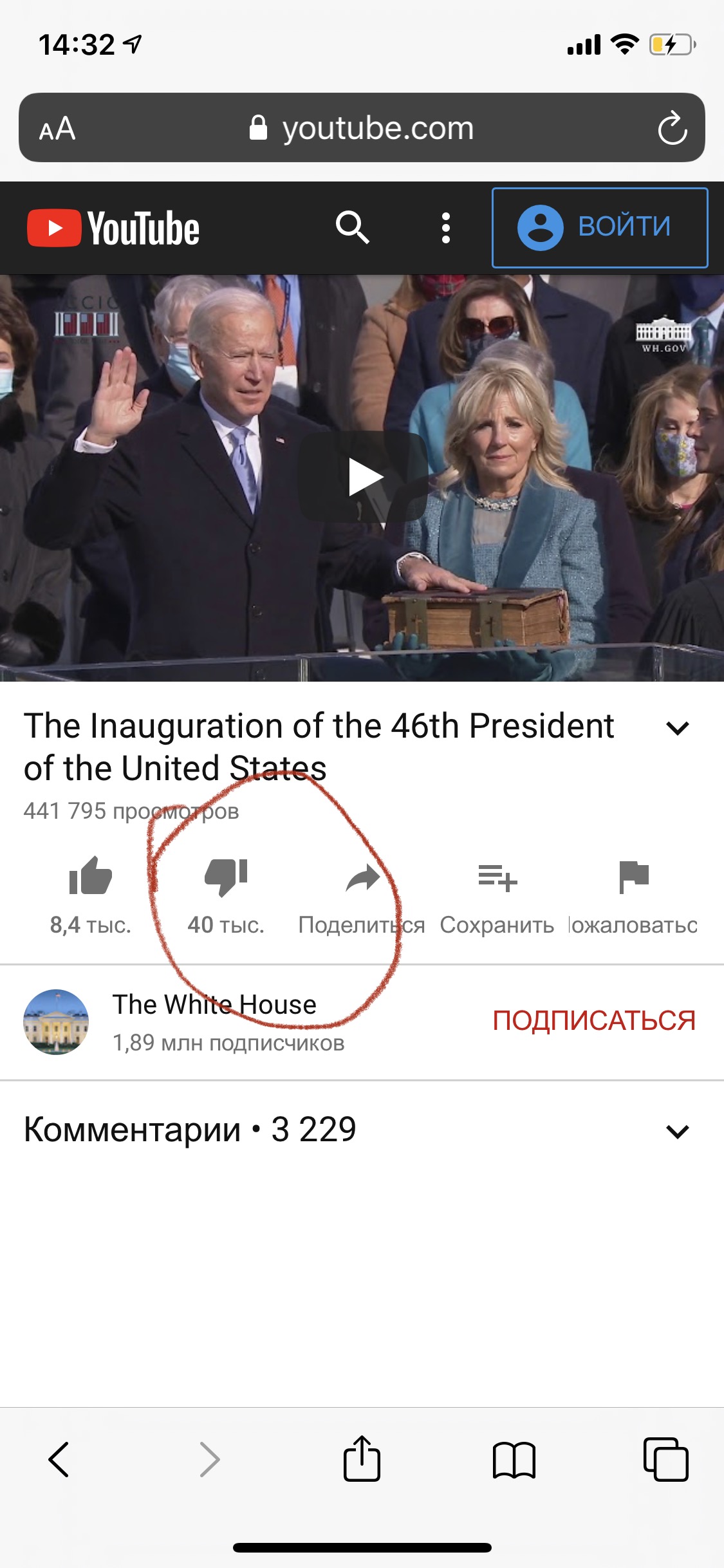 Просто интересно ... Почему на YouTube канале белого дома , инаугурация Байдена столько деслайков. Кто его выбирал ?