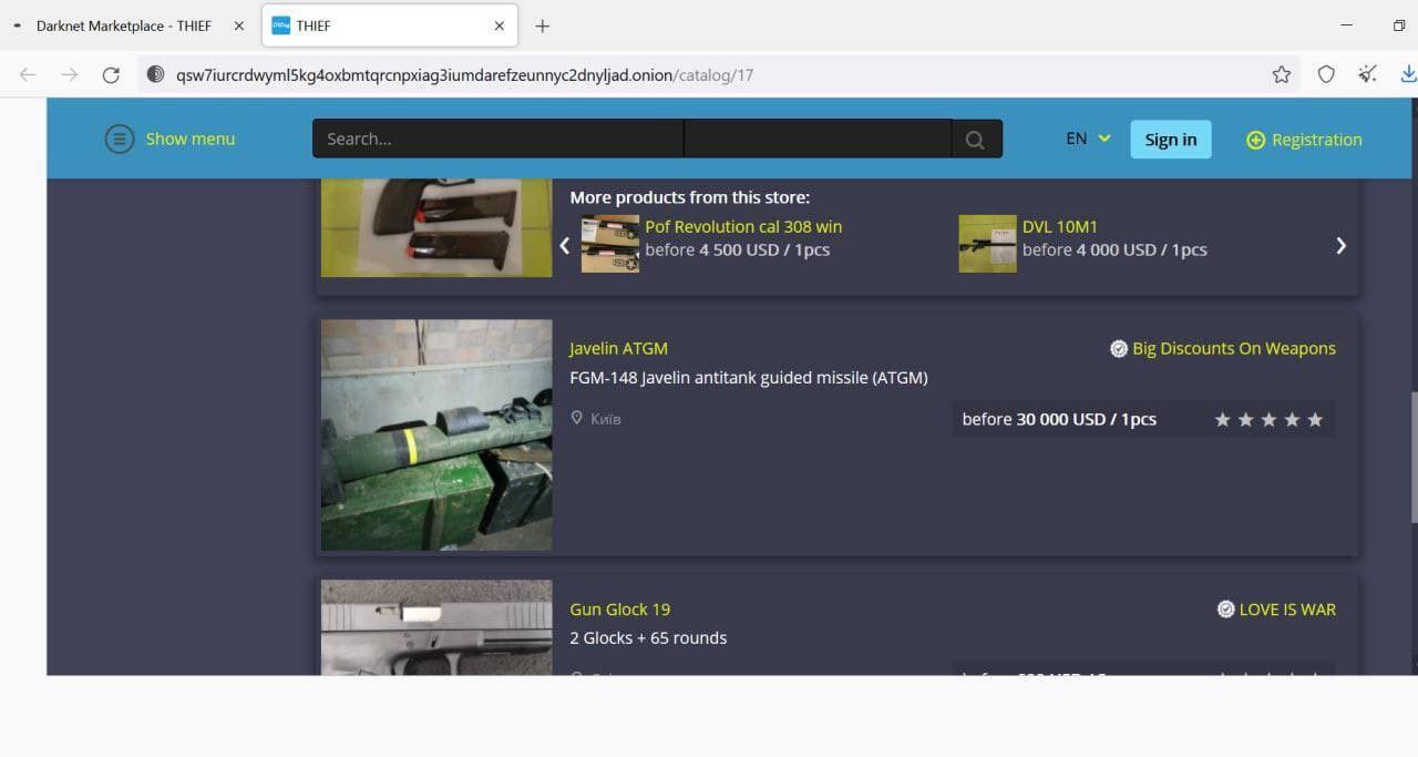 Цитата: про вопящих маргиналок и бурятов таскающих унитазы Подходи не ленись - покупай Джевелинс! В Украине через сервисы даркнета продают противотанковые ракетные комплексы Javelin  , которые им поставляют Соединенные Штаты Америки. Продавцы оценили вооружение в 30 тысяч долларов. Локацией, где расположены Javelin, обозначен Киев.