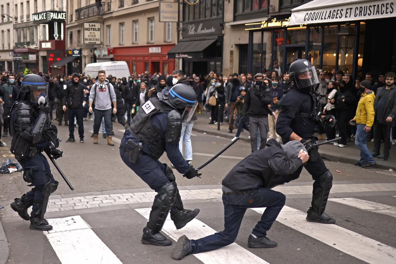 После подавления протестов во Франции некоторый люди остались изувеченными: в Руане женщине взрывом гранаты оторвало палец, один мужчина потерял глаз, еще одному пришлось удалить яичко после избиения полицейской дубиной.