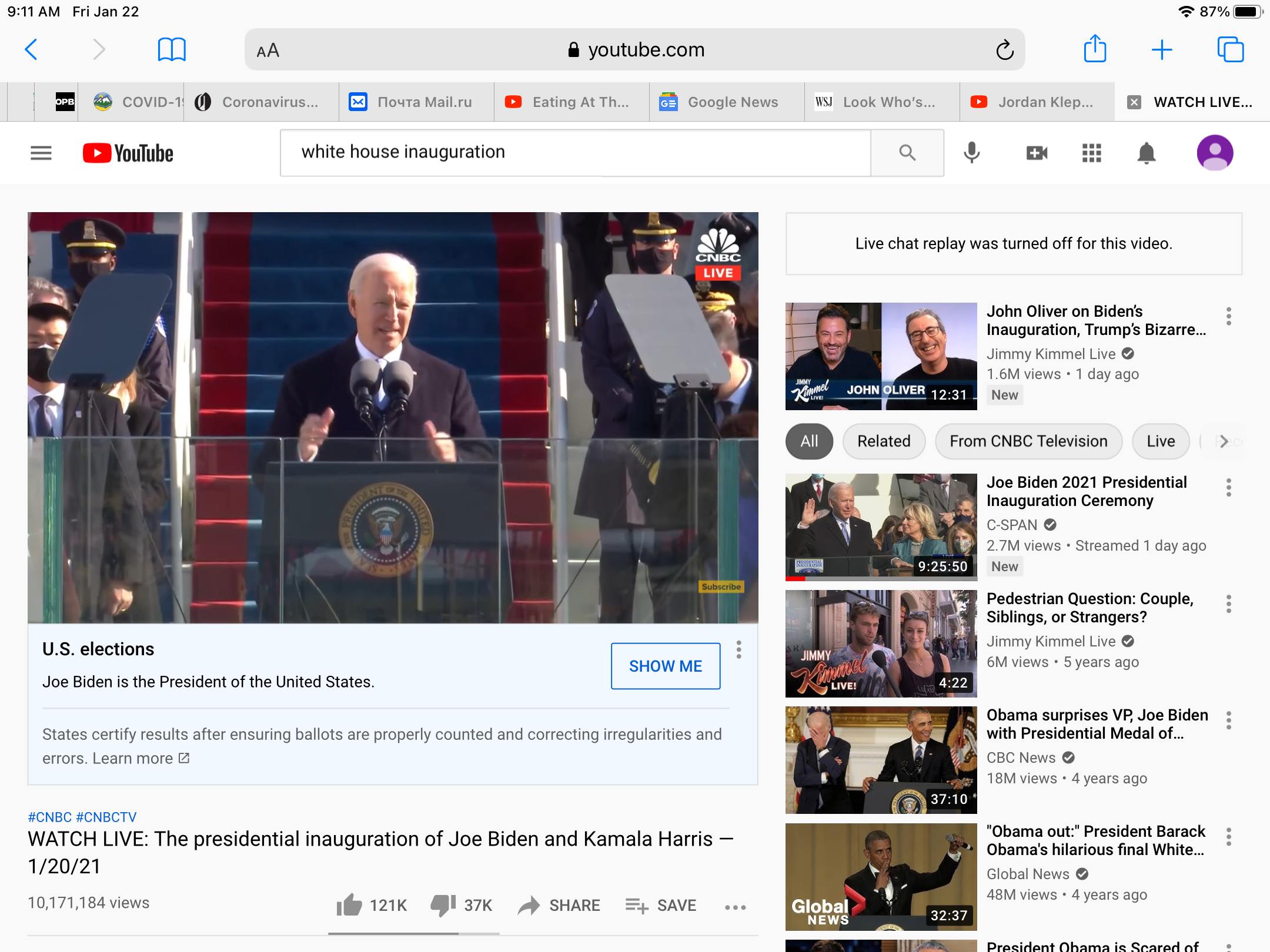 Amalia_Ca писал(а): Просто интересно ... Почему на YouTube канале белого дома , инаугурация Байдена столько деслайков. Кто его выбирал ? Чего то просто интересно стало. То есть можно зайти на канал Белого Дома, и там все по русски будет? Вплоть до подписаться/отписаться? Комменты, я так понимаю, тоже не на английском  ?