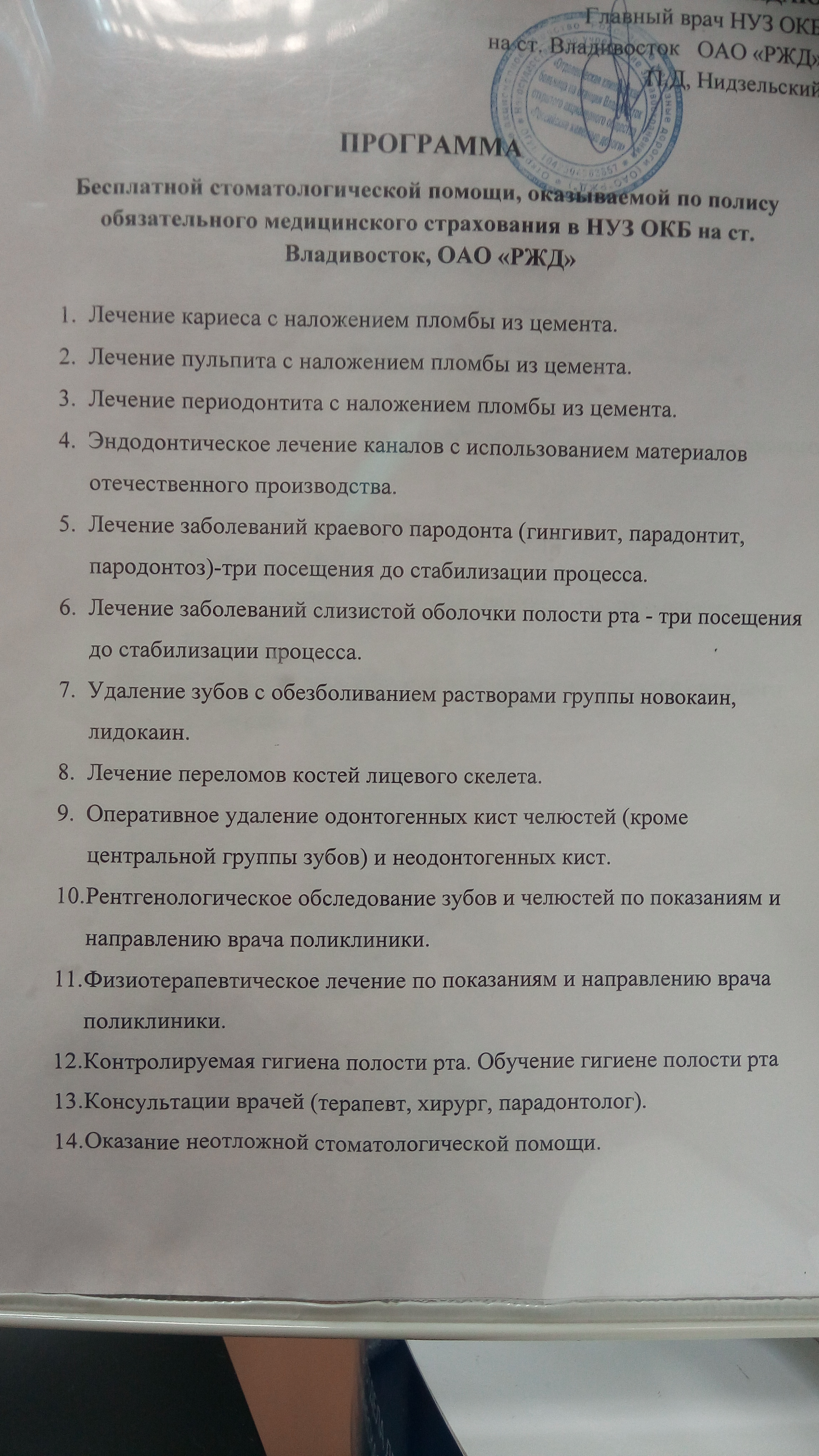 Сфотографировала бесплатный минимум по стоматологии в поликлинике.
