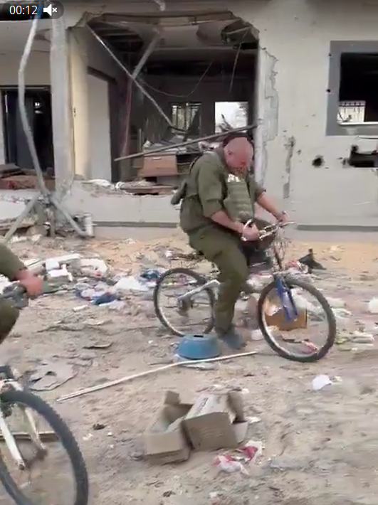 Сектор Газа. Израильские солдаты катаются на велосипедах детей, которых они бомбили.