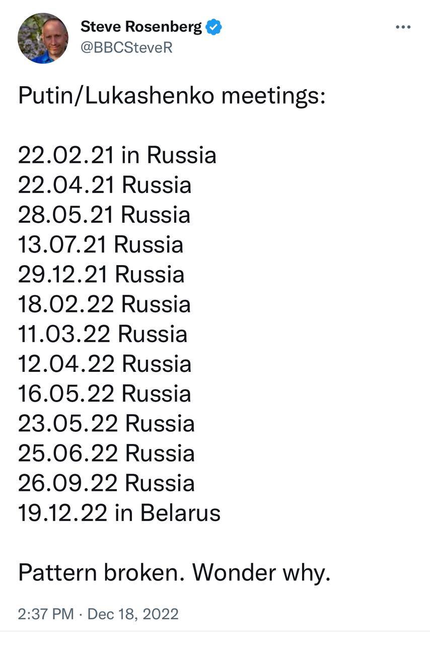 Действительно, интересная последователь встреч президентов России и Белоруссии с февраля 2021 года: она впервые будет проходить в Белоруссии.