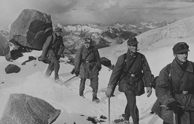 В 1-й горнопехотной дивизии "Эдельвейс" вооруженных сил нацистской Германии (вермахта) служили уроженцы горных районов Южной Германии, Баварии и Австрии. В годы Второй мировой войны дивизия принимала участие в боях против Красной армии, в том числе на Украине, в Донбассе и под Харьковом, а также на Северном Кавказе. Дивизия "Эдельвейс" также участвовала в захвате Польши и других европейских стран, в карательных операциях против партизан в Югославии, Чехословакии, Италии, Греции. Военнослужащие дивизии совершали военные преступления в Польше, Греции Италии, Югославии. Среди этих деяний - депортация евреев в лагеря в Польше и казни итальянских военнопленных в Греции и Албании после того, как Италия в 1943 году подписала перемирие со странами антигитлеровской коалиции.