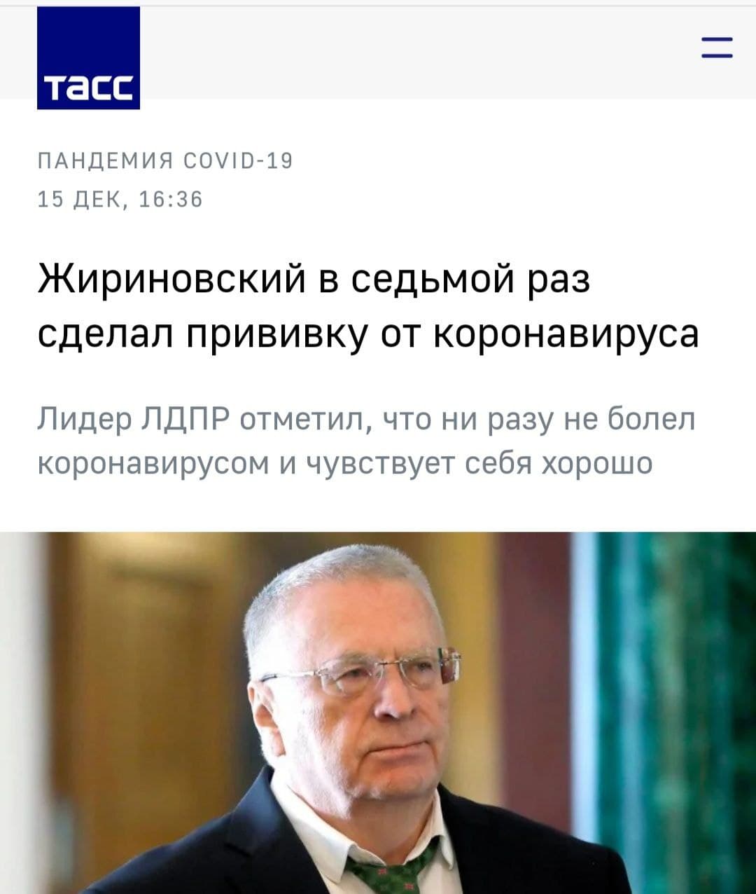 Как и следовало ожидать, после 7-ой прививки от Ковид , сделанной в декабре, Жириновский подхватил коронaновирус в тяжелой форме. По данным MASH у Владимира Жириновского, заразившегося "омикрон"-штаммом ковида, поражено 50-75% легких .