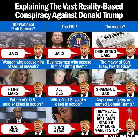 A здесь проанализировали лживые или неправильные заявления Трампа за последние 8 месяцев...оп говорит неправду на публику в среднем 3 раза в день, но особенно продуктивными в этом плане были последние 2 недели, на прошлой неделе от него прозвучало 57 фальшивых заявлений: https://www.thestar.com/news/world/2017 ... dates.html