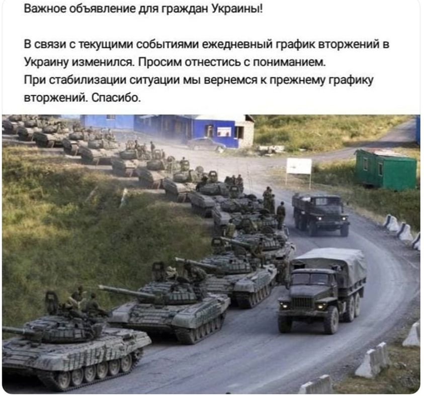 Эльза II писал(а): New York Times говорит, России пришлось отложить наступление на Украину из-за относительно мягкой земли. Танки у россиян на резиновом ходу (наверное), а технические характеристики заточены под вечную мерзлоту, вот и не получается (опять) наступление внаукраину, на зимней резине не доедешь ведь. Поэтому решили перенести ближе к весне (Байден сказал)  Не спрашивайте меня, где тут логика. Передайте Училковне, пусть внесёт изменения в график наступлений. Ты недовольна опять