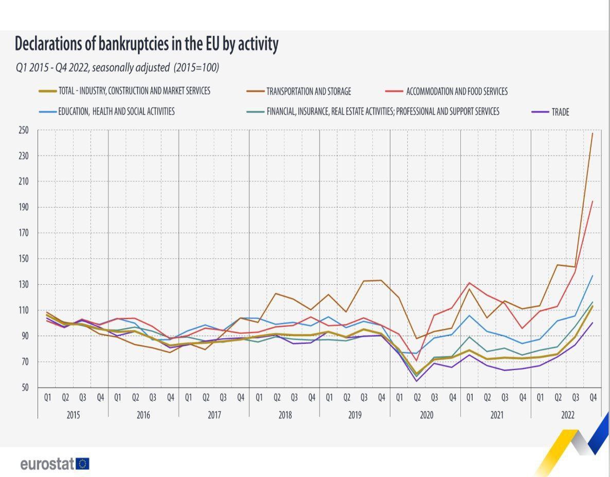 Погнали Евростат сообщает о резком росте количества банкротств европейских предприятий. Европейских, Карл! Страна-бензоколонка, помните? Сырьевая экономика, помните? Урсулу фон дер Ляйен на Всемирном экономическом форуме (ВЭФ) в Давосе помните? «Мы вводим сильнейшие санкции против РФ, которые погружают экономику России в рецессию на десятилетия, и ее индустрия лишается современных и критических технологий», — сказала она. Довводились и допогружались... ДБ...
