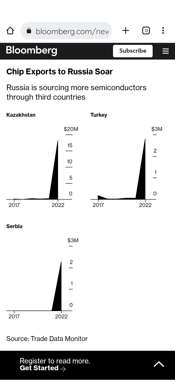 Продолжаем Увы, Россия не смогла наковырять достаточное количество микрочипов из холодильников и микроволновок.... Пришлось по старинке закупать эти самые микрочипы напрямую у производителей, ну... или почти напрямую. Ковыряние, я так понимаю, отменяется https://www.bloomberg.com/news/articles/2023-03-04/putin-gets-military-tech-chips-semiconductors-despite-eu-and-g-7-sanctions Russia Is Getting Around Sanctions to Secure Supply of Key Chips for War Imports of chips from Turkey, UAE have soared since invasion European March 4, 2023 at 3:00 AM EST