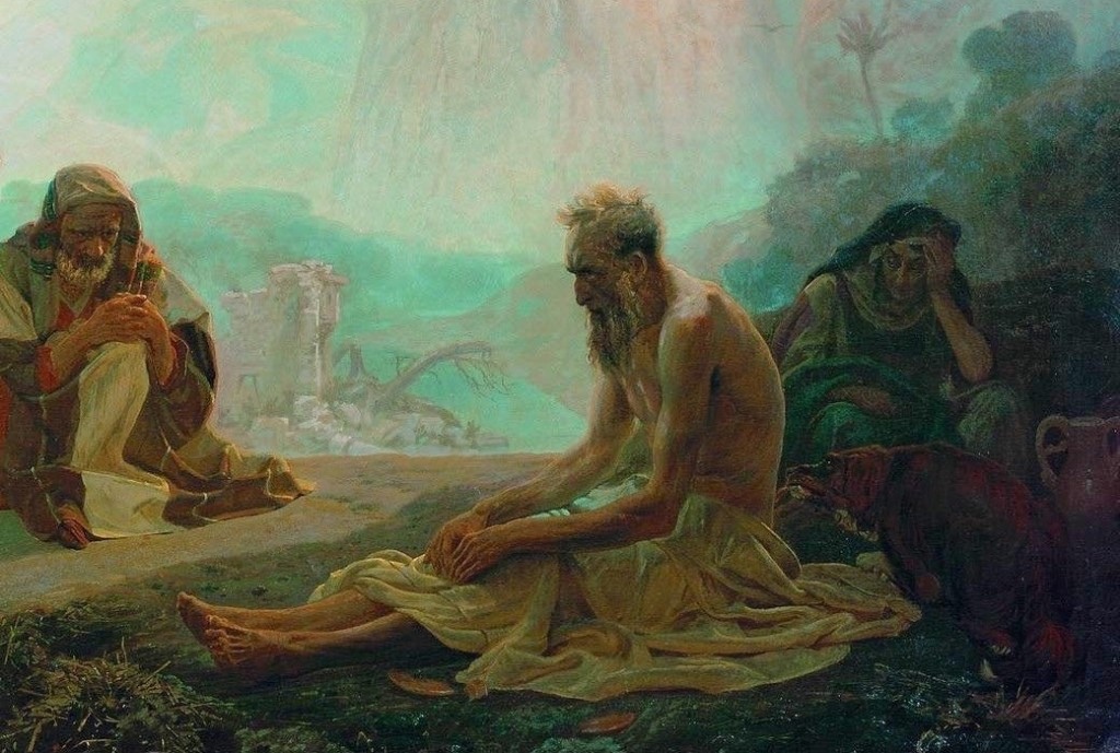 Праведный Иов тяжко скорбел, но и в этих страданиях остался верен Богу. Он отвечал жене: "Ты говоришь, как одна из безумных. Неужели доброе мы будем принимать от Бога, а злого не будем принимать?" И не согрешил праведный ни в чем перед Богом.