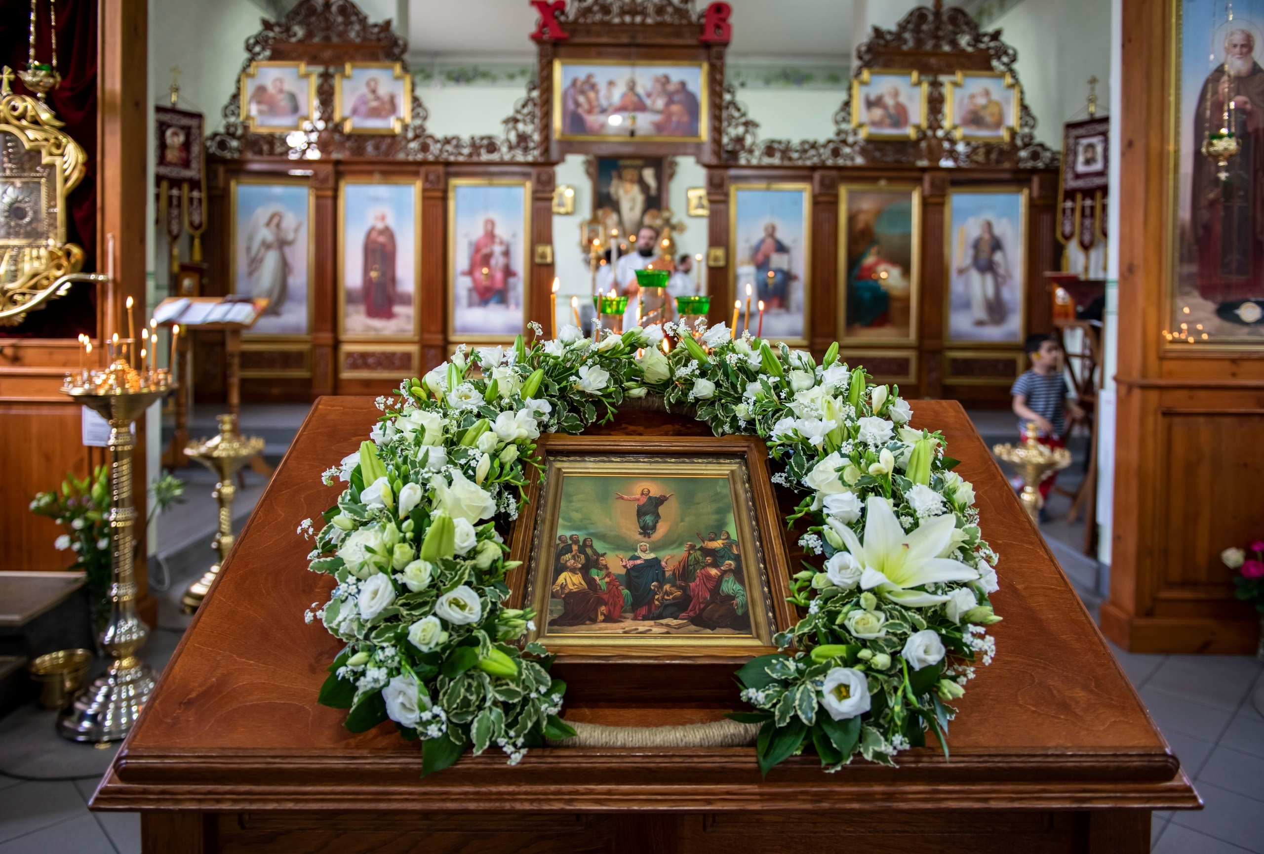 В Деяниях святых апостолов описано, что, начав возноситься, Христос был сокрыт облаком, и тогда явились «два мужа в белой одежде», которые возвестили Его Второе Пришествие. Ученики же поклонились Ему и с радостью вернулись в Иерусалим (см. Лк. 24, 52), где через несколько дней на них сошел Святой Дух (см. Деян. 2, 1–4).