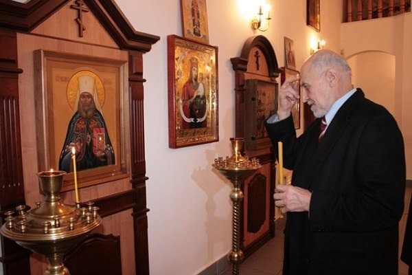 На фото: Николай Дроздов молится своему святому прапрадеду Филарету Дроздову.