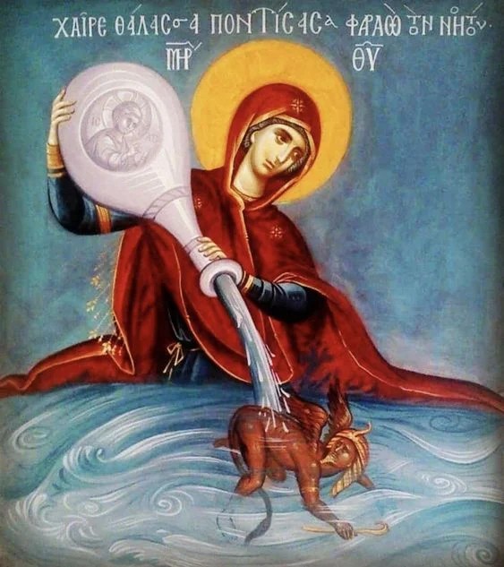 "Our thoughts are like little Pharaohs that take us captive and keep us enslaved. Pray to the Mother of God, and she will help you drown those thoughts in the Red Sea, bringing you safely through the raging sea of the mind onto dry land....."