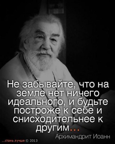 Moon17 писал(а): Baylee писал(а): Moon17 писал(а): но вот как воспринимать цитаты такого человека? красивые цитаты может допустим и уголовник (утрировано) говорить но что стоит ети цитаты когда ты знаешь что не согласен с действиями, мировозрением etc етого человека как бы ети цитаты обесцениваются что ли... много кто может красиво говорить (ну свяшеники и подавно) но кто стоит за етими цитами? что за человек? мне например важно,а вам? не цитата ради цитаты просто что красиво, а и человек ее висказываюший надеюсь достойный тем более в вопросе веры (я про цитаты именно по вере) Конечно, важно. И слова, и дела- за всё будет человек отвечать... Но здесь также важно понимать, что Господь хочет, чтобы мы смотрели больше за собой, а не за другими. Вот только что попалась на глаза цитата: "Не забывайте, что на земле нет ничего идеального, и будьте построже к себе и снисходительнее к другим." Иоанн Крестьянкин. О чем это? Говорит человек хорошие, правильные вещи- порадуйся... Есть какие-то сомнения- отвернись, не слушай. Главное, чтобы у тебя представление о хорошем правильно сформировалось. А для этого надо читать Евангелие и Святых Отцов. Если все равно трудно сформулировать четкую позицию, бывает, нужна помощь духовника. А судить о достойности того или иного- это путь в никуда. Никто из людей не совершенен. Это аксиома, потому что так задумано Богом. Любого священника возьми, и будет за что осудить (ну, я, конечно, исключаю святых... на то они и святые). Мне вот очень импонирует отец Дмитрий Смирнов. За дела, его, пожалуй, не осудишь, а вот высокомерие и раздражительность время от времени проявляются. И что? Я то понимаю, что мы замечаем в других то, что нас гложет. Т.е. не будь во мне высокомерия и раздражительности, я бы этого в отце Дмитрии и не замечала. Понимаете? А это, в свою очередь, от гордыни. Только она дает нам чувство собственного превосходства, что ведет к осуждению и всем смежным проявлениям. ну и толк постить цитаты таких вот "ткачевых" а там иди знай кто вообще еще за кадры за етими цитатами православными... вот иза таких "ткачевых" у меня с религиозными организациями проблемы и не только дело в православии везде таких "неоднознсчных"полно у католиков или протестантов тоже вроде красиво мудро человек говорит о вере боге, а он бах и кской то педодил дегенерат или мошеник поетому мне комфорнее не кого не вовлекать в мою душу-веру ну типа духовных отцов итд мне хвататает связь бог -я! без посредников земных конешно я люблю читать людей так сказать в теме, и с мировозрением близким мне, но виводы делаю сама а не "кушаю все что дают" (не кому не в укор,просто моя позиция) Я вас очень хорошо понимаю... сама через это проходила. Теперь то я знаю, что это- от гордыни. Только объяснить другим невозможно. Либо поймете со временем, либо нет. Ткачев еще не объявлен виновным, так что имеет право на пастырскую деятельность. Как и вы право его игнорировать. Толерантность и еще раз толерантность