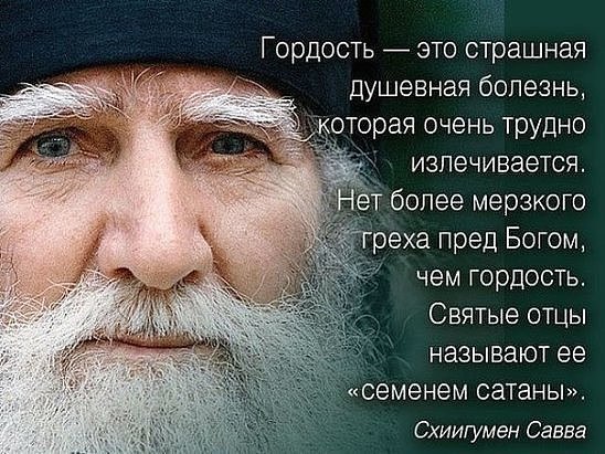 «Первый признак гордости – это обида. Когда человек обижается - это говорит о его скрытой глубокой гордости. Обидчивые люди – это очень гордые, самолюбивые люди. И когда мы себя ловим на мысли, что мы обиделись, это только свидетельствует о том, что в нас живет гордыня – эта страшная разрушающая зараза, страшная болезнь, которая поедает нашу душу, как ржа поедает железо.