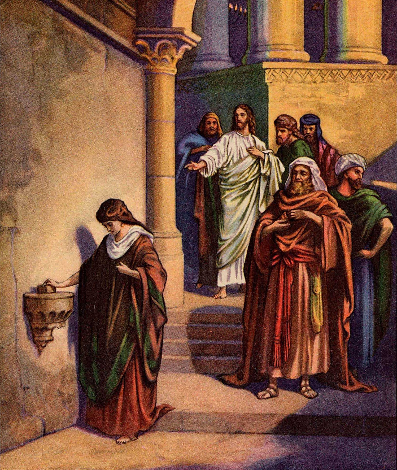 Вдовица та не получила бы одобрения, если бы сказала себе: имею желание положить и я, да что делать? Только и есть у меня что две лепты. Отдай их, сама не при чем останусь. Но как поимела желание, так и сделала, предав жизнь свою в руки Божии. И если бы не положила ничего, никто бы ее не осудил, ни люди, ни Бог. Но тогда она не явила бы и такого расположения, которое выделило ее из ряда других и сделало славною во всем христианском мире. (1 Пет. 4, 12-5, 5; Мк. 12, 38-44).