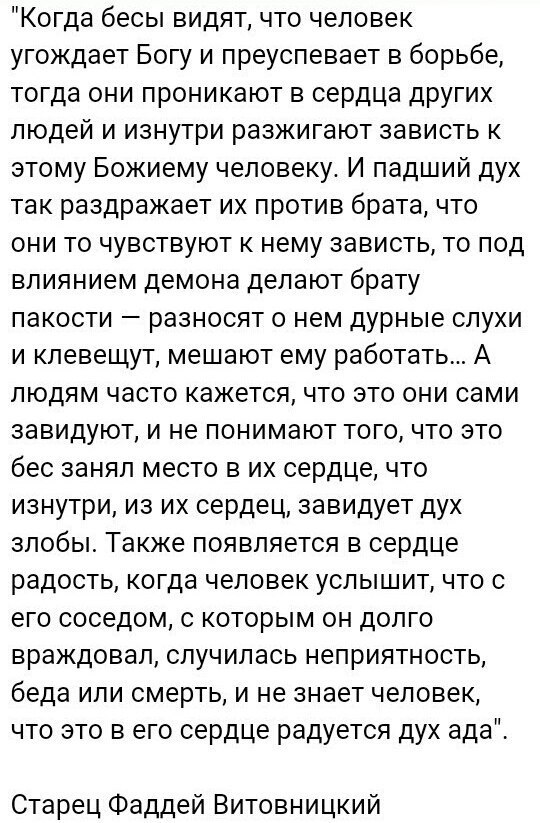 Обязательно МОЛИСЬ за врагов. Если не молишься то пламя их злобы и ненависти к тебе только сильней разгорается, как будто ты подливаешь — в него керосин. Бесы распаляющие злобу к тебе — во врагах твоих, если ты не молишься ещё яростней будут натравлять врагов на тебя. И только по нашей молитве — за врагов Господь отгоняет — бесов и прекращает — злобу.