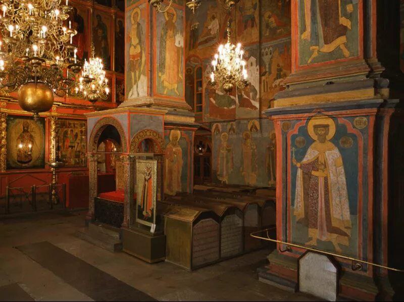 Многие из них покоятся в Кремле. Святители, предстоятели Русской Церкви - в Успенском соборе. Благоверные князья и цари - в Архангельском соборе.