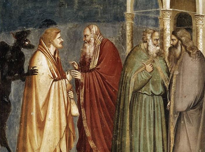Когда же Иисус был в Вифании, в доме Симона прокаженного, приступила к Нему женщина с алавастровым сосудом мира драгоценного и возливала Ему возлежащему на голову. Увидев это, ученики Его вознегодовали и говорили: к чему такая трата? Ибо можно было бы продать это миро за большую цену и дать нищим. Но Иисус, уразумев сие, сказал им: что смущаете женщину? она доброе дело сделала для Меня: ибо нищих всегда имеете с собою, а Меня не всегда имеете; возлив миро сие на тело Мое, она приготовила Меня к погребению; истинно говорю вам: где ни будет проповедано Евангелие сие в целом мире, сказано будет в память ее и о том, что она сделала. Тогда один из двенадцати, называемый Иуда Искариот, пошел к первосвященникам и сказал: что вы дадите мне, и я вам предам Его? Они предложили ему тридцать серебренников; и с того времени он искал удобного случая предать Его. Мф. 26, 6-16