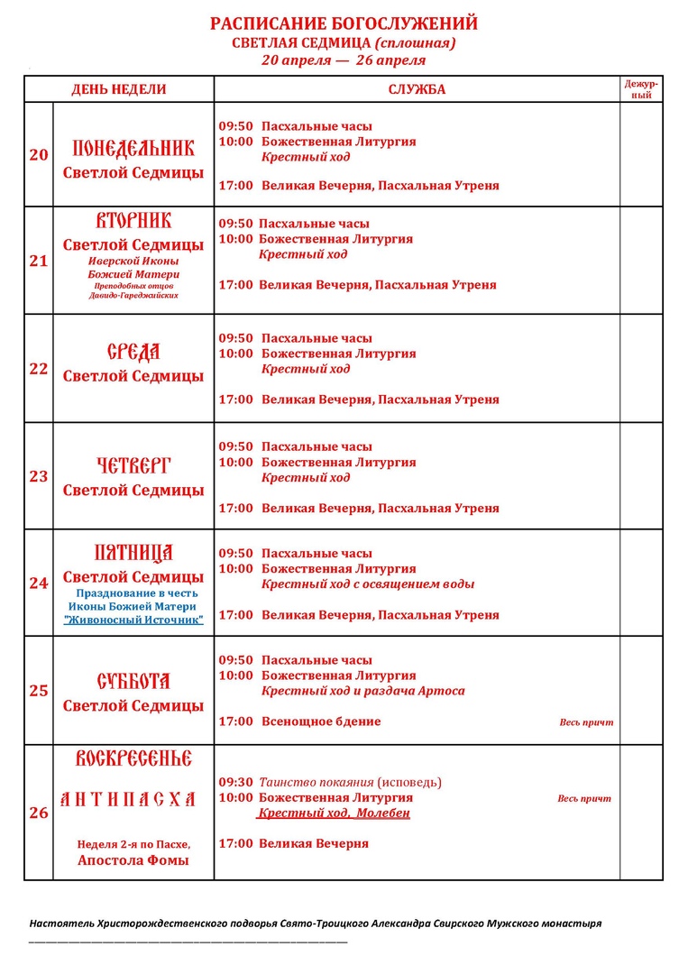 *Со дня Святой Пасхи до дня Святой Троицы не совершаются земные поклоны (50 дней).