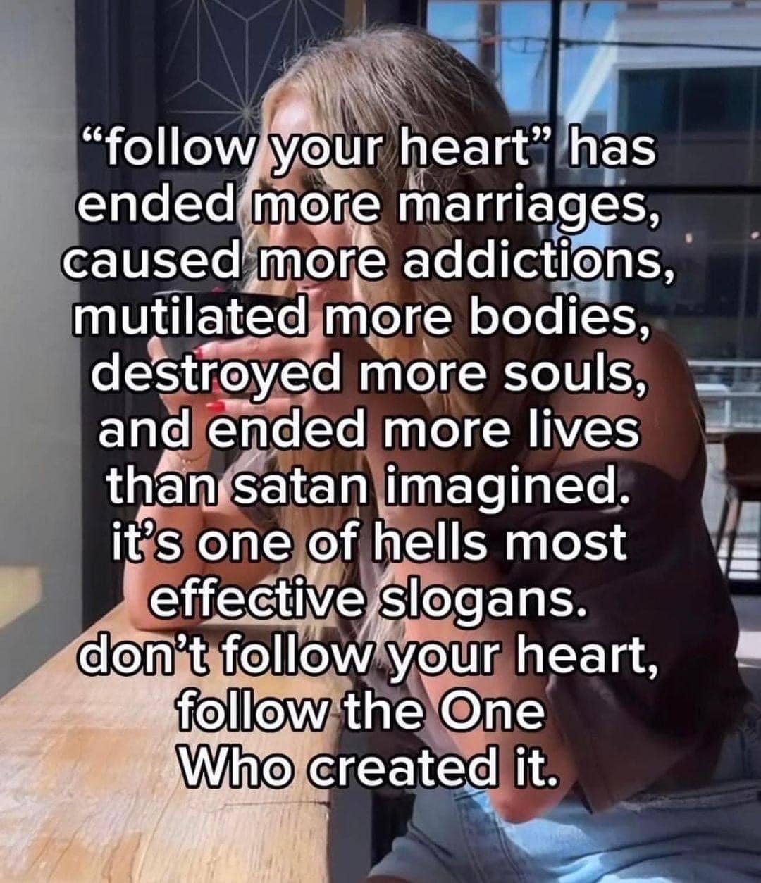 "You be you" is Satan's counterfeit to God's, "Be holy as I am holy.” I don't want to be any version of “me” that is not united to the likeness of Jesus Christ and His mission and His ministry. God had to save me from the destruction that my distorted, self-invented “me” brought about! By God’s grace, I take refuge in the pattern set by the Apostle Paul who said, "I have been crucified with Christ. It is no longer I who live, but Christ who lives in me."
