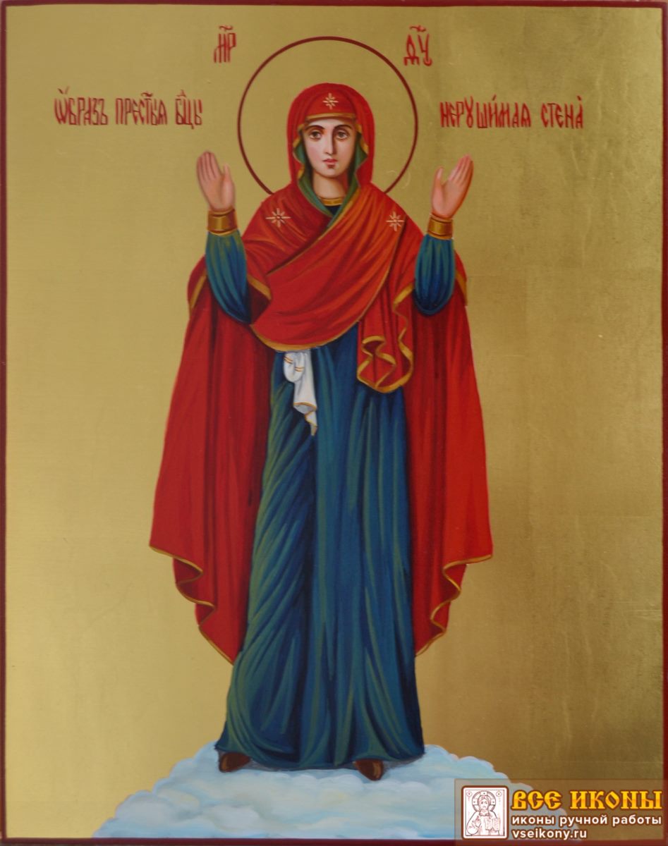 Самым распространенным типом изображений Богородицы является Оранта. На изображении Богородица стоит в полный рост с распростертыми в сторону руками, с развернутыми ладонями наружу. Этот жест символизирует заступническую молитву.