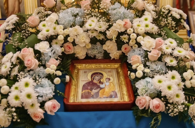 На Госпожу Пречистую Деву Марию уповаю ради щедрот и милости Ея: очи Ея на нищих призирают и руце Ея к сиротам и вдовицам простерты; взыщите Ю от юности вашея и прославит вас пред лицем Бога ходатайство Ея к престолу Его, отымет множество наших грехов, милость и утешение небесное всегда Она нам приносит. О, Приснодево Преблагословенная, простри к нам крепкую десницу Твою, со благоговением ю лобызаем, и не отврати от нас лице Твое.