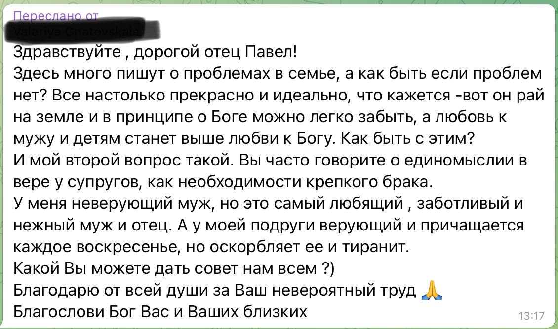 Священник Павел Островский: Если вам кажется, что ваша половинка в браке полностью совпадает с вами по характеру, то это повод для большой радости, потому что рядом с вами находится очень терпеливый человек