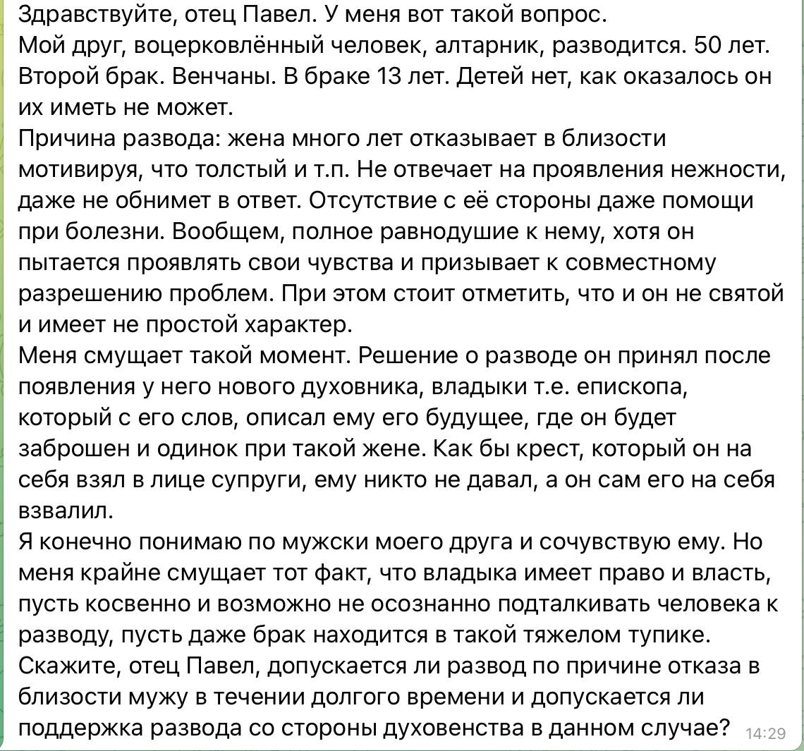 По семейным вопросам лучше советоваться с семейным священником, а не с монахом, пусть даже если это епископ. Потому что теория в полной мере может быть понята только при наличии практики, если конечно речь не идет о грехопадениях, которые лучше бы нам знать только в теории. Церковь принципиально стоит на том, что надо всеми силами стараться сохранять брак, а развод - это исключительная мера, которая должна применяться в крайнем случае. Учитывая, что мы будем именно перед Богом отвечать за свои действия, то я бы рекомендовал для начала узнать мнение других опытных духовников, а потом уже совершать шаги, которые могут иметь необратимые последствия для духовной жизни.