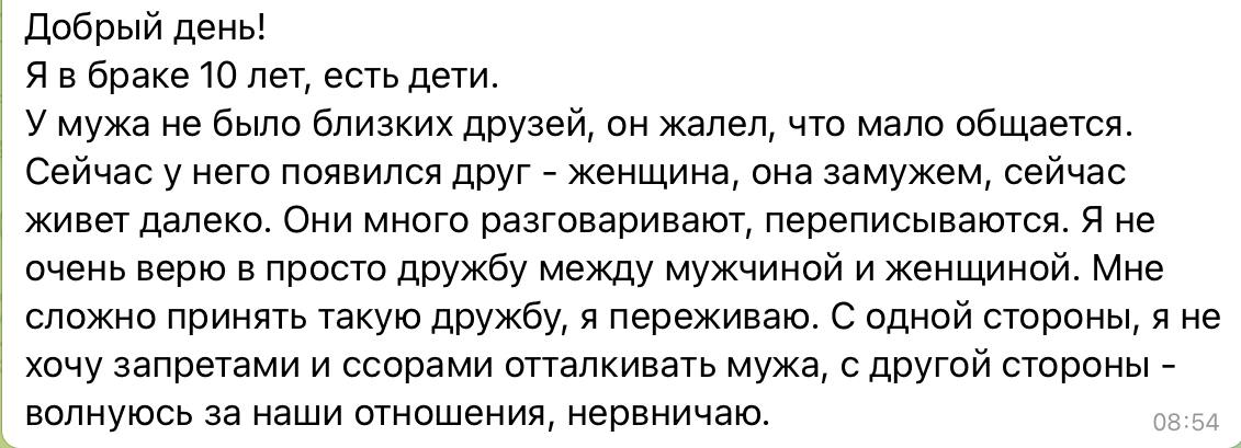 Ваши волнения понятны и обоснованы, так как в зрелом возрасте влюбленность вспыхивает зачастую не от внешних форм и обстоятельств, а от душевного единомыслия. Думаю, что вам стоит попросить мужа познакомить вас с этой женщиной, чтобы вы могли тактично до нее донести, что ее общение с вашим мужем вас нервирует. А по ее реакции будет сразу понятно, что это за «дружба».