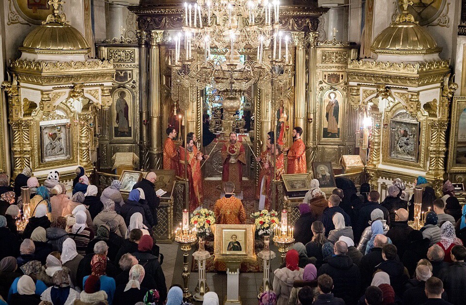 Новогодняя ночная литургия в Михайловском соборе (Свято-Успенский Псково-Печерский монастырь).