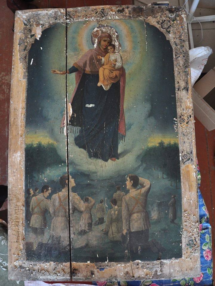 В храме Покрова Пресвятой Богородицы в городе Бобрава Курской области находится икона Божией Матери относящаяся к этой редкой иконографии. Икона Покровского храма по своим живописным и технологическим особенностям относится к началу XX века, а значит, была написана сразу после явления Самой Пресвятой Богородицы солдатам и является списком с первой чудотворной иконы.