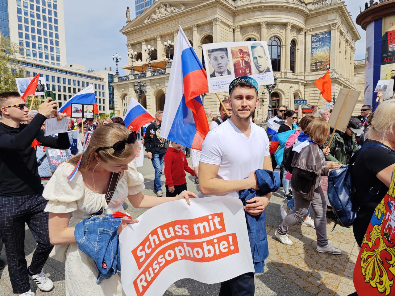 Шествие «Бессмертного полка» в городе Франкфурт-на-Майне прошло под российскими флагами В Германии 7 мая в городе Франкфурт-на-Майне жители вышли на акцию «Бессмертный полк» в честь 78-й годовщины Победы. Участники несли в руках российские флаги и пели патриотические военные песни.