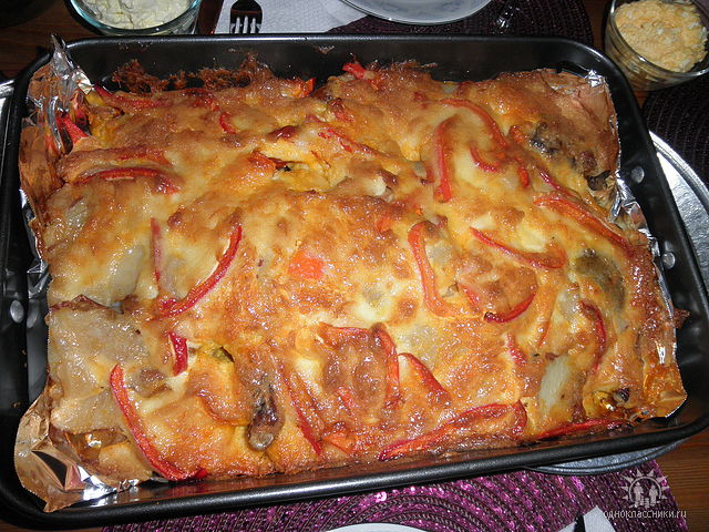 fatcat писал(а): Цитата: мясо по-капитански - это типа запеканки.. лук кружочками, свинина (шея) или кура (бедрышки или ножки), сверху картошка пластинками нарезана (ну как на чипсы только толще), сыр, майонез. я дома раньше плавленные сырки терла вместо сыра - разница с сыром огромная, сырки осаются тягучими и очень очень!!! нежными, а сыр коркой зажаривается. не знаю где тут и сырки можно купить... Дык это обычно называется "мясо по-французски" http://www.good-cook.ru/vtoroe/vtoroe_048.shtml я мясо по-капитански всегда так делала: на кусок отбитой свинины (соленой-перченной) - несколько колечек лука, майонез, кружочек свежей помидорки, кружочек соленого огурчика, сверху тертый сыр. А мясо по-французски действительно как описали выше - как запеканка, то есть мясо запекается не одним большим куском а режется на кусочки поменьше и укладывается слоями с луком и картошкой