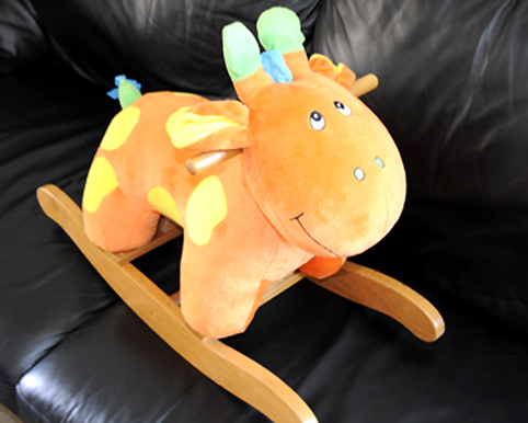 я так понимаю это северный олень)) рожка одна тарахтит, другая пищит, грива шуршит и одно ухо жмешь оно мычание странно издает, но не коровье а какой-то все таки оленье. Че пишу не знаю что за зверь, потому что позавчера на гараж сэйле за пять баксов купила. Помыли, высушили и дали на растерзание мелкому.