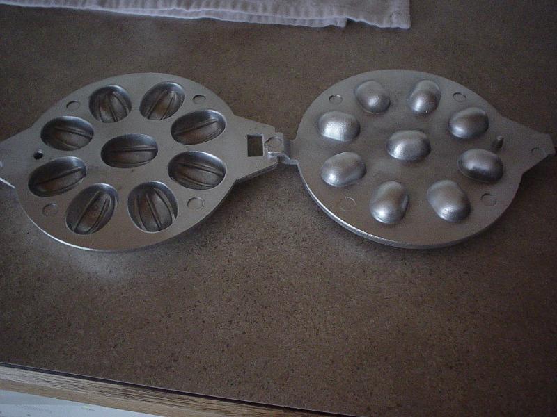 Я вот у нас в русском маг купила такую орешницу. Сегодня пробовала печь на плите-она у меня стеклянная. Вот мои орешки. Девченки,а вы их с обеих сторон печете? Я только с одной пекла. Начинку сделала из пинатбатера и окрошек. Завтра понесу на работу-сослуживцам попробовать.